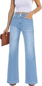 Wide Leg Jeans for Women Trendy High Waisted Flare Stretchy Denim Pants Baggy Dual Button Trouser Jeans Pockets
