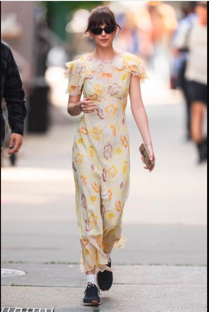 Materialists Dakota Johnson Yellow Floral Dress Bright, breezy, and effortlessly feminine—this yellow floral dress captures the romantic charm of Dakota Johnson in Materialists. Perfect for sunny days, garden parties, or casual strolls, it’s a fresh take on timeless style.
